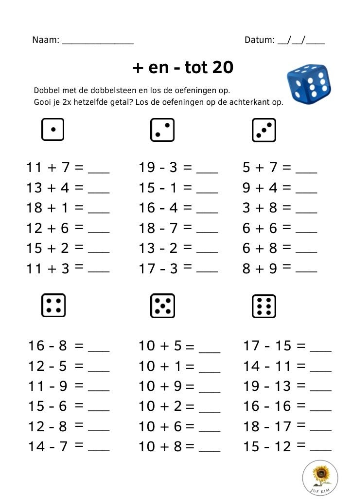 Om deze oefeningen vlot te kunnen oplossen moeten de leerlingen vlot kunnen optellen en aftrekken tot 20.